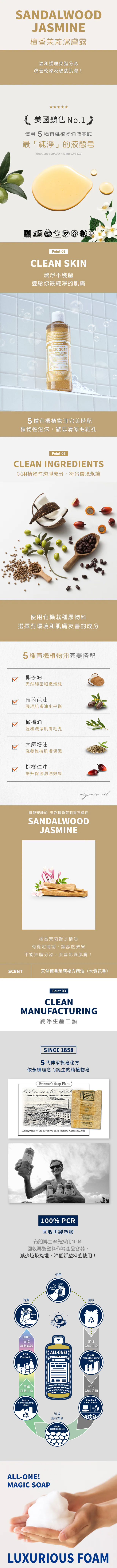 布朗納博士的這款香皂濃縮、可生物降解、用途廣泛且功效顯著。採用有機和經公平貿易認證的原料製成,並採用100%消費後回收瓶包裝。多效合一!