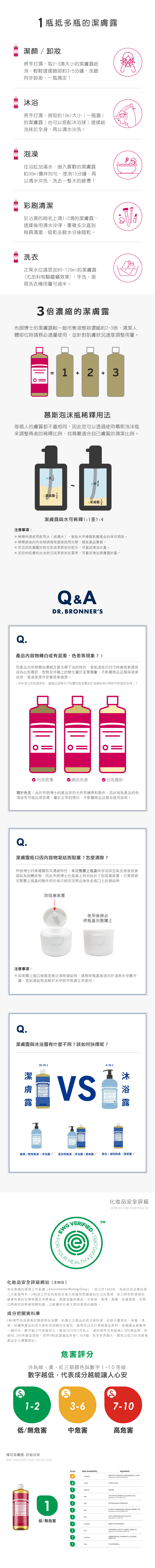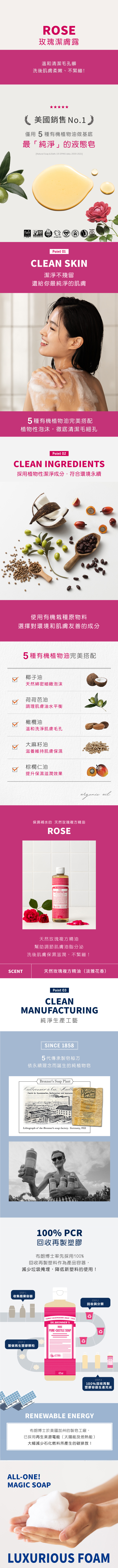 沉醉於布朗博士玫瑰液體皂的清新玫瑰香氛之中。這款香皂蘊含高濃度天然玫瑰香氛,讓肌膚倍感柔軟清爽。採用 再生有機認證®精油,可產生豐富奢華的泡沫,在沖洗的同時也能清潔肌膚。採用符合倫理道德標準的有機原料精製而成-不含洗滌劑、染料或添加發泡劑。純植物成分,採用有機精油製成,符合公平貿易標準,並獲得EWG®認證-讓您安心沐浴!
